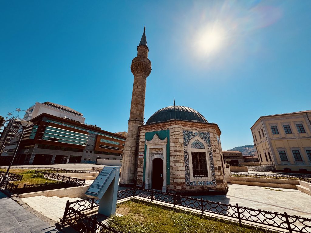 Kemeraltı çarşısı içerisinde yer alan camii 1668 yılında İzmir kadısı Ali Efendi tarafından yaptırılmıştır. Camii klasik Osmanlı mimarisiyle inşa edilmiş olup döneminin önemli dini ve kültürel yapılarından biridir. Kemeraltı çarşısında gezinirken biraz vakit ayırıp camiyi görebilirsiniz. Haritada 18 numara.
